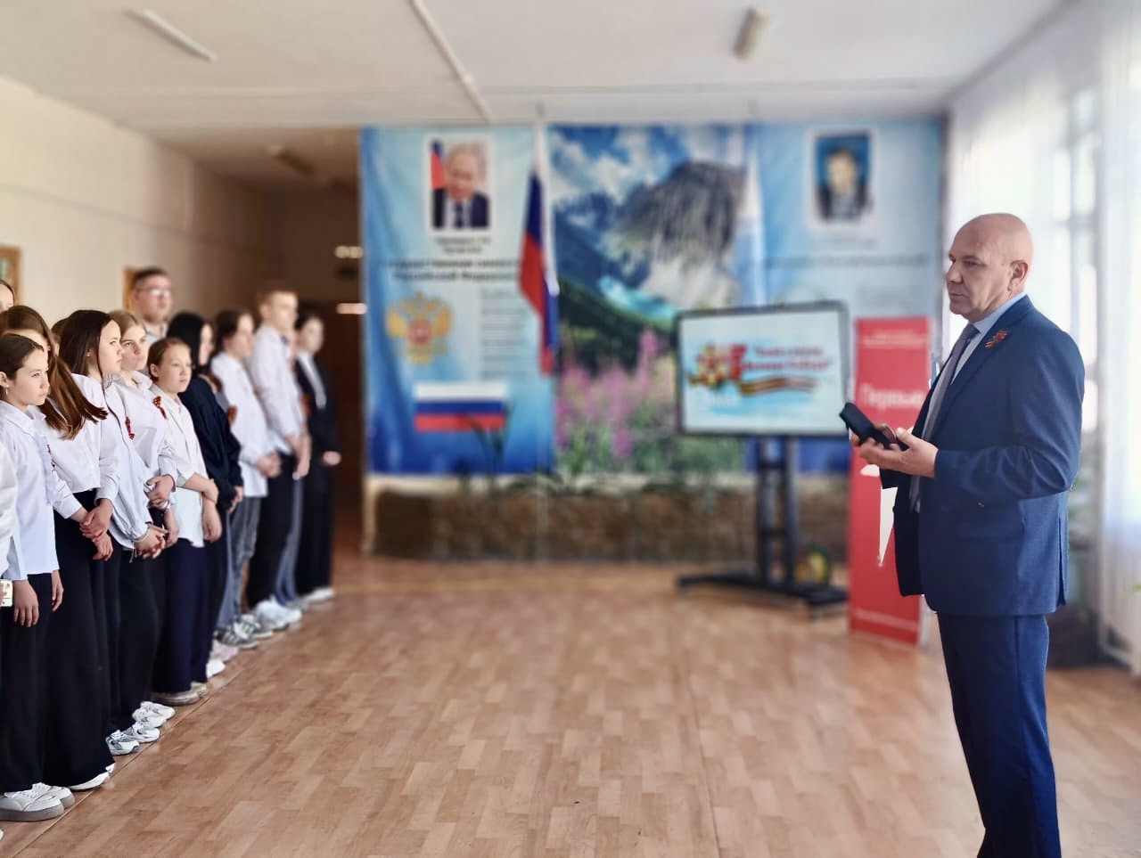 Сегодня председатель Комитета по гражданской обороне, чрезвычайным ситуациям и пожарной безопасности Республики Алтай Юрий Леонтьев провел «Урок Мужества» для учащихся Соузгинской средней общеобразовательной школы. Мероприятие было посвящено 80-й годовщине Победы в Великой Отечественной войне.